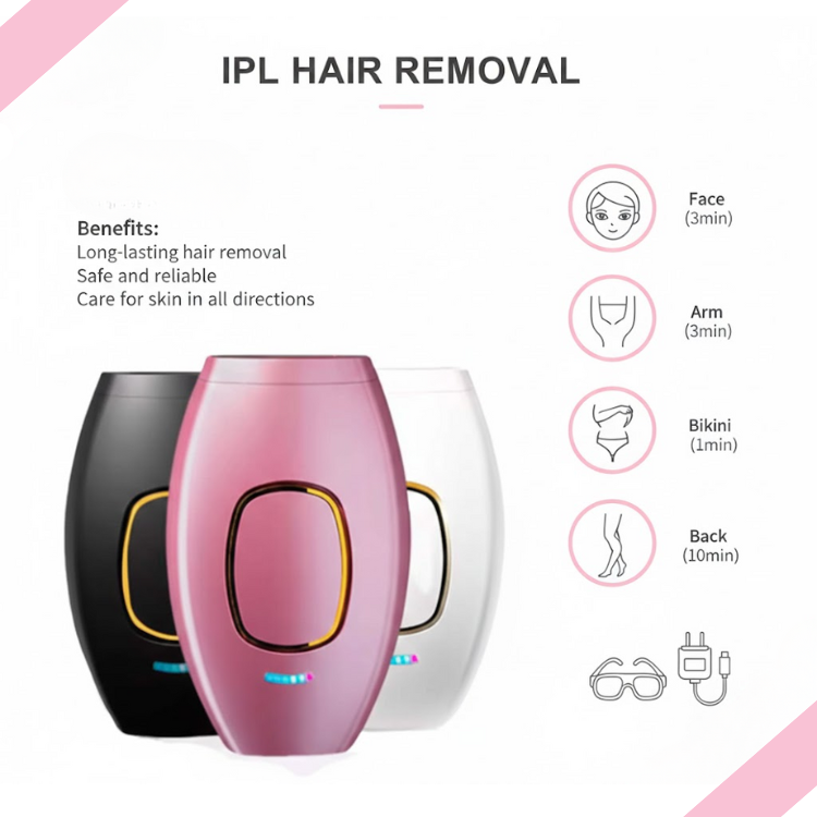 The IPL Hair Removal Device is designed for painless, at-home hair removal and long-term hair reduction.
