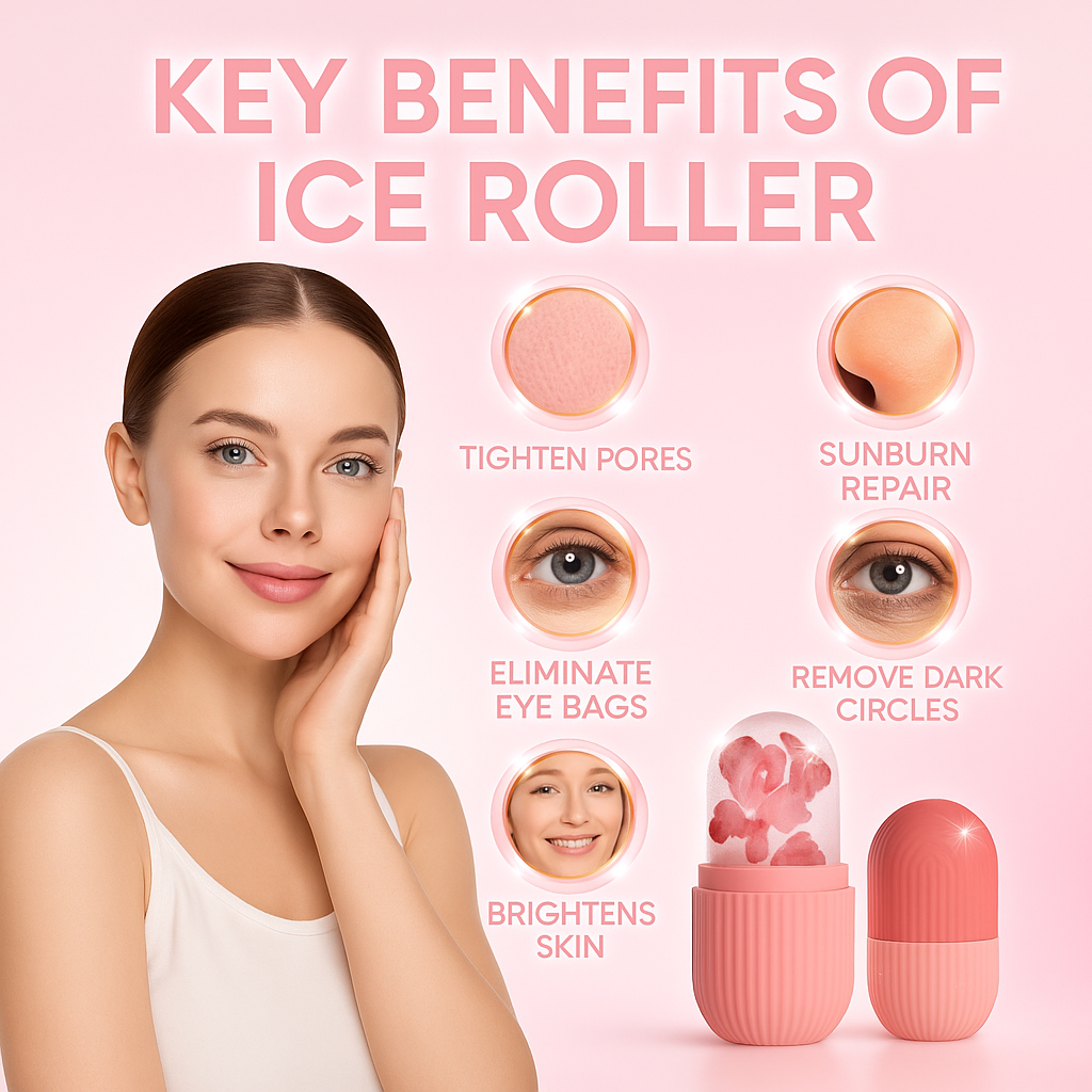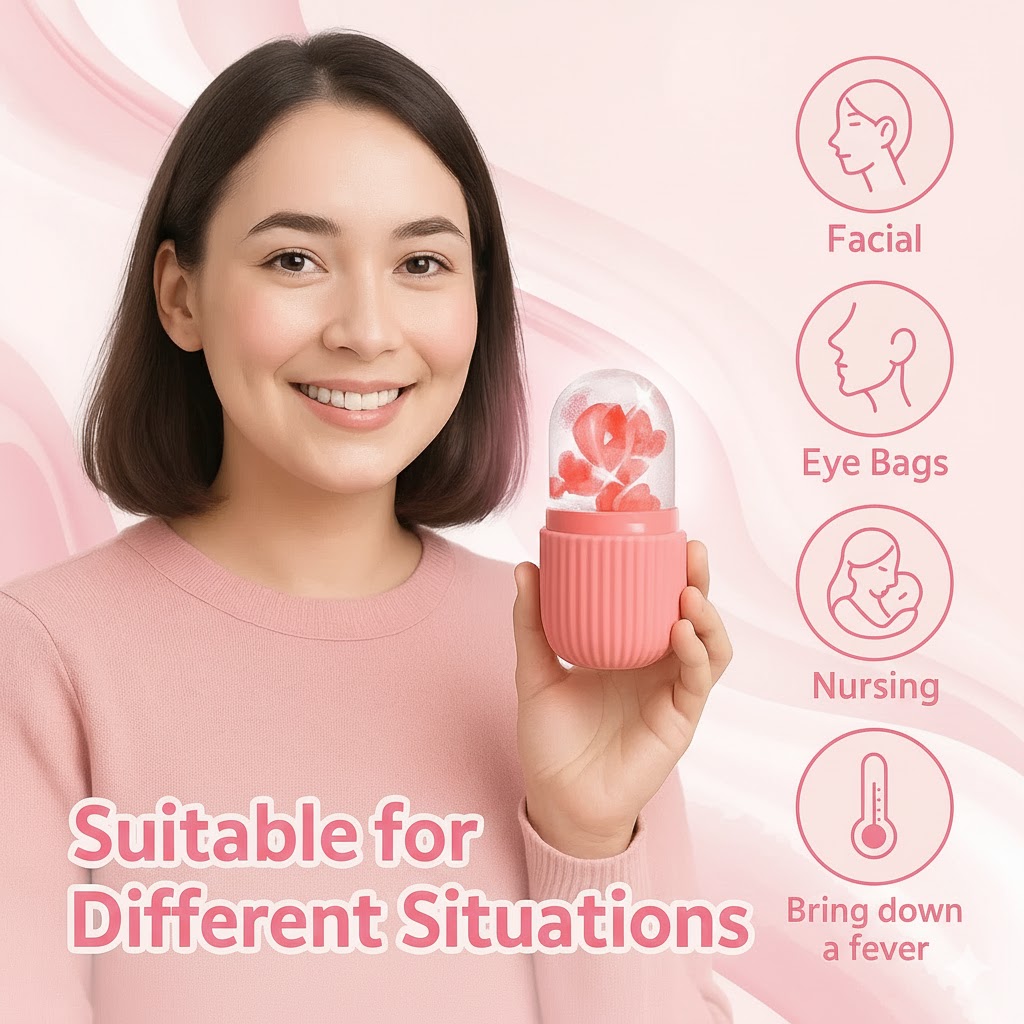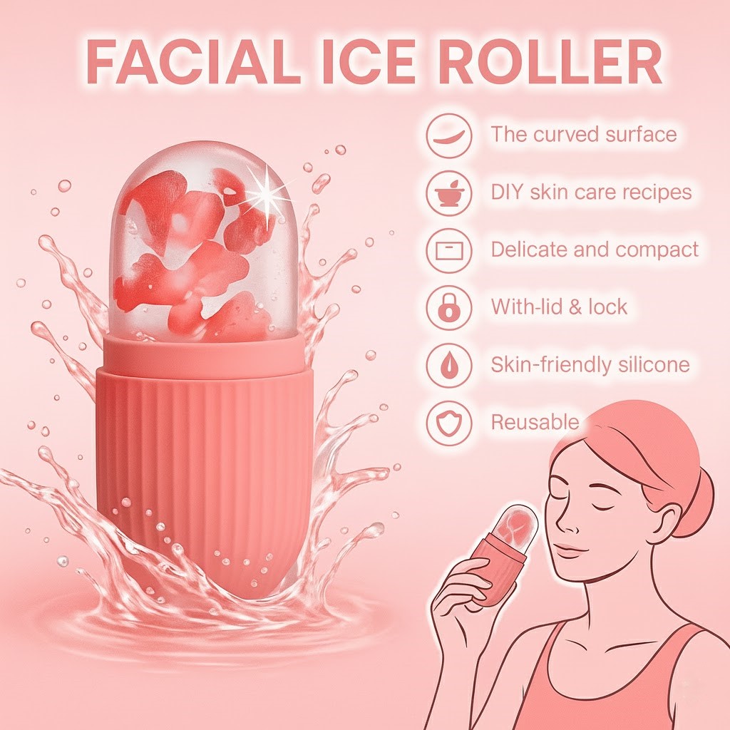 This face ice roller helps reduce under-eye puffiness, brighten the complexion, tighten pores, and boost blood circulation. Its cooling effect calms inflammation and supports beauty, cleansing, and skin-revitalizing routines.